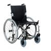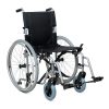 Запросить оптовую ценуКресло-коляска Н 001-1 отличается облегченной алюминиевой рамой и наличием быстросъемных задних колес, а также парой дополнительных маленьких колесиков, которые помогают преодолевать узкие дверные и лифтовые проемы при снятых основных колесах. Антиопрокидыватели поддерживают уверенное положение при наезде на уклон или препятствие, они также оснащены колесами. Складная рама, съемные подножки и подлокотники позволяют перевозить коляску даже в небольшом багажнике автомобиля.