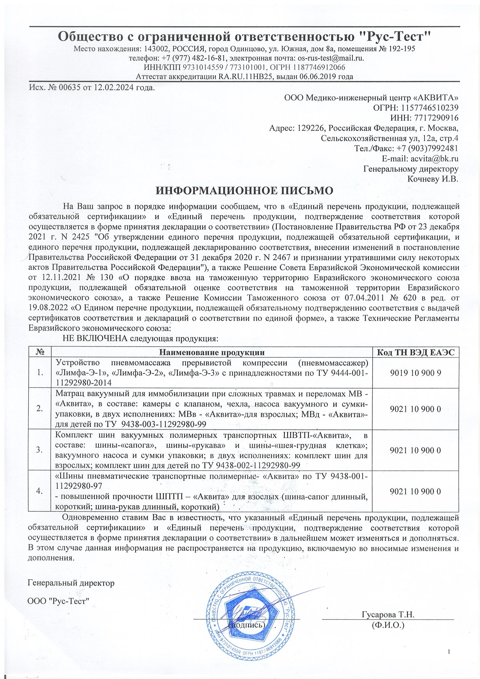 | Гарантия изготовителя | 1 год |