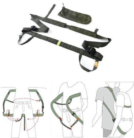 Назначение: Устройство предназначено для переноса пострадавшего на спине спасателя.