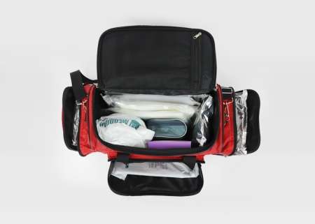 Сумка универсальная СМУ-02 изготовлена из синтетической водоотталкивающей ткани. Дно выполнено из непромокаемого тентового материала, что обеспечивает хорошую влагоизоляцию. Для защиты вложений от механических повреждений в стенках сумки находятся моющиеся съёмные каркасные элементы. Для размещения вложений есть 3 кармана, в которых можно разместить лекарственные препараты, основной отсек и отсек для хранения документов. На внешней части сумки расположен держатель для информационной таблички (для обозначения номера бригады и т.п.). По периметру корпуса сумки расположена светоотражающая полоса для обеспечения безопасности работы в темное время суток. Для удобства переноски сумка снабжена двумя ручками (для ношения одной рукой) и плечевым ремнём со специальной накладкой, которая предохраняет его от сминания.
